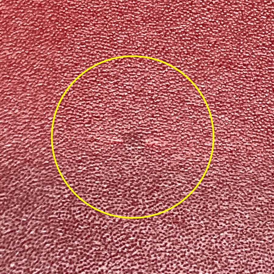 工場より到着後弊社にて検品し、ひどいものは除外しますが、軽微なもの※2(下記写真同等)は良品として納品させていただきます。気になる方は、黒や紺色をご選択いただきますようよろしくお願い申し上げます。